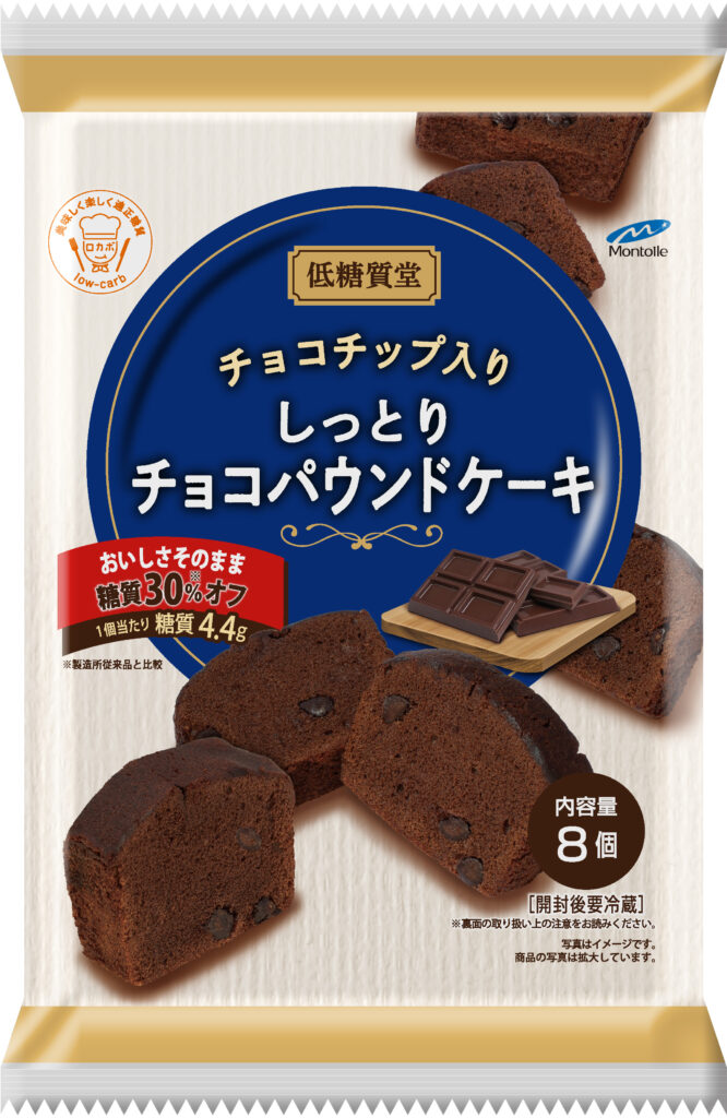 しっとりと焼き上げたチョコパウンドに、チョコチップを加えたチョコづくしのパウンドケーキです。「おいしさ」と「低糖質」を両立した設計で、1個あたり糖質を抑えつつも、しっかりとチョコケーキを食べた満足感が得られるのが特徴です。